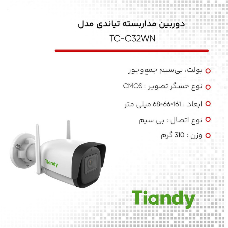 دوربین مداربسته تحت شبکه تیاندی مدل Tiandy TC-C32WN i5/WIFI/Z/4mm/V4.0